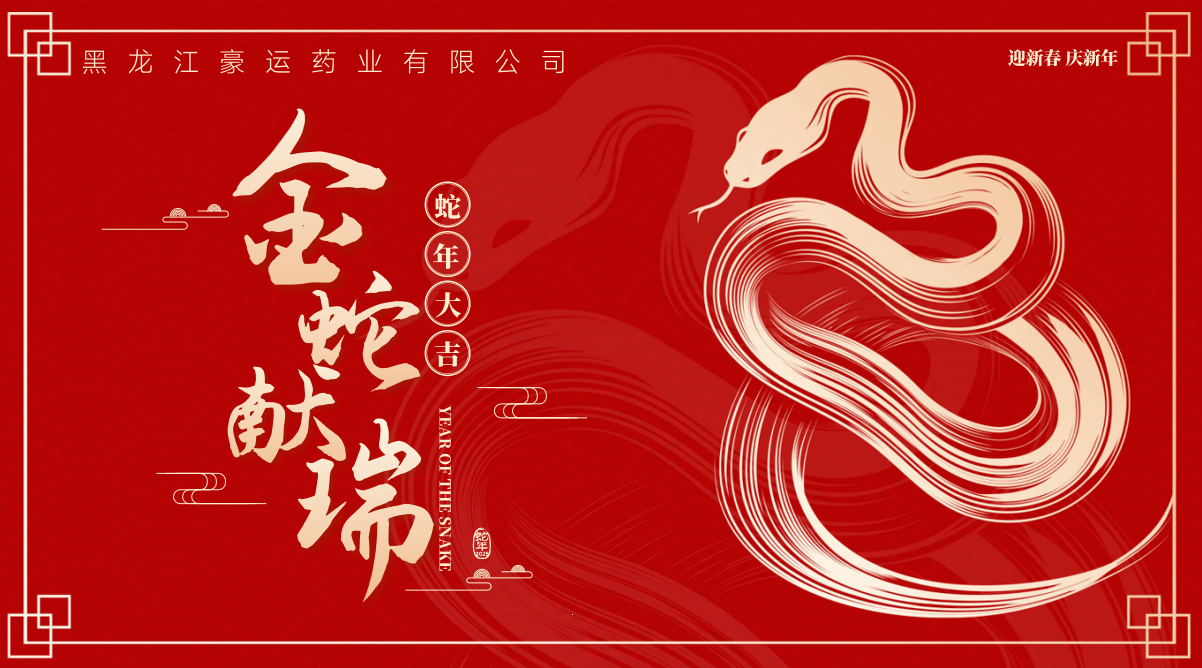 挑燈辭舊歲,瑞雪兆豐年。此新春佳節(jié)即將到來之際,黑龍江豪運藥業(yè)有限公司在此誠摯的祝愿大家,壽似銀蛇翩翩舞,平安吉祥不勝數(shù),福似長蛇排成排,財源滾滾往家來,所有不快隨風(fēng)去,幸福美滿笑開懷。2025祥蛇現(xiàn)身,愿您美夢成真!蛇年如意!